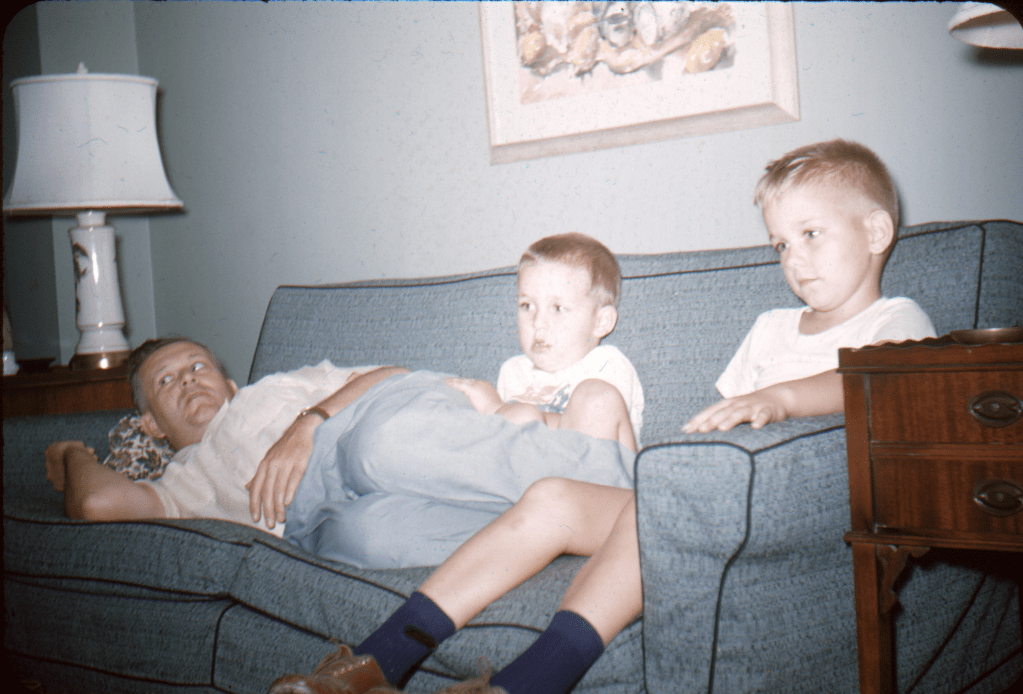 Bob and Tom in living room c 1955